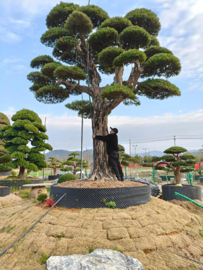 多次调整:大棵罗汉松造型需分阶段进行,每次调整后观察生长情况,逐步完善。