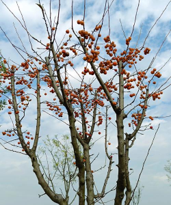 栾树:果期9-10月,蒴果像小灯笼,颜色从粉色褪为米色,种子可榨工业用油,不可食用。