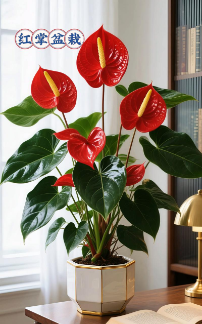 佛焰苞红色,花蕊挺立,耐养且全年开花,适合17-20厘米花盆。