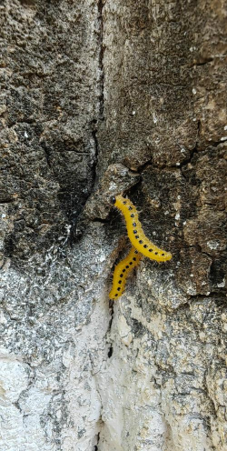 特征:幼虫全身密布灰黄色长毛,背部有枣红色瘤,1年发生4-5代,5月初出现第1代幼虫,成虫有趋光性。