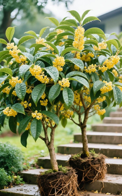秋季是桂花盛开的季节,尤其是四季桂,适合盆栽养护。桂花喜阳光和肥沃土壤,花期香气浓郁。