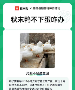 解决方案:保持鸭舍干燥、通风,冬季使用发酵床保温(维持20℃左右),稳定光照时间,减少外界干扰。