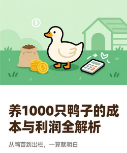 销售渠道:需提前对接市场,避免滞销。总结:养鸭利润从每批1750元至16万元不等,取决于规模和管理水平。建议初期小规模试养,技术成熟后逐步扩大规模,并注重成本控制和市场拓展。