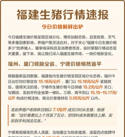 近期全国生猪价格普遍下跌,福建亦受波及,10月3日至4日单日跌幅达0.67元/公斤,反映市场供应充足但需求疲软。如需更详细的分区价格或历史走势,可参考具体来源链接。