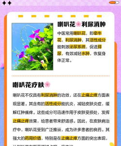 泻下通便:牵牛花的种子(牵牛子)含有牵牛子甙,在肠道内分解为牵牛子素,能刺激肠道蠕动,改善便秘问题。