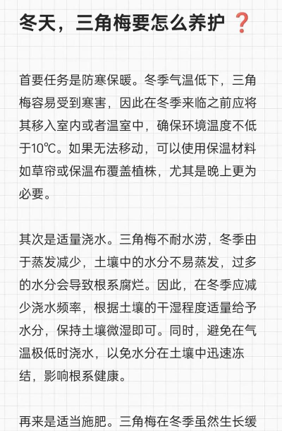 地栽三角梅在冬季的养护需要根据当地气温采取针对性措施,尤其是防冻、控水、防风和施肥管理。以下是综合各来源的实用建议: