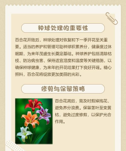 百合花开花后,种球的处理是关键,直接影响来年能否复花。以下是综合多个可靠来源的详细处理步骤: