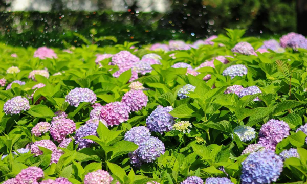 花期:6月至8月,花球状,颜色多样(蓝、粉、紫等),喜半阴湿润环境,适合庭院或花海景观。