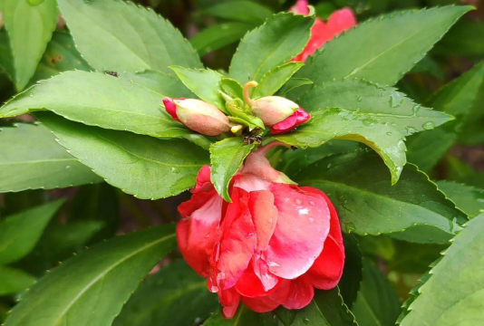 五色当头凤:同一株开多色花,花大艳丽。凤仙花因其鲜艳花色和独特形态,广泛用于观赏和民间染甲(花瓣捣碎可染指甲),兼具药用价值。