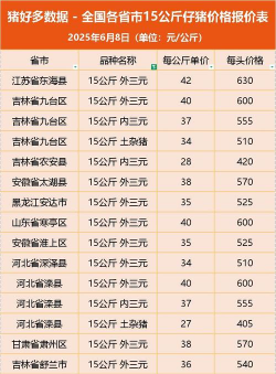 江苏省仔猪价格呈现区域性差异,如东海县单日最高价差达3元/公斤。全国仔猪市场整体低迷,9月中旬以来价格持续下跌,主要受供应过剩和育肥亏损影响,养殖户补栏意愿低迷。如需更详细的历史趋势或其他品种(如内三元、土杂猪)价格,可参考具体地区报价或行业分析报告。