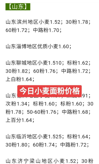 城阳区特一粉价格为1.70元/斤(环比持平);江山市特一面粉均价1.8-3.0元/斤,特二面粉1.70-2.2元/斤;贺州市标准粉2.50元/斤、富强粉3.00元/斤;河北省富强粉批发价1.78元/斤,零售价1.89元/斤;漯河市标准粉1.87元/斤,特一粉1.99元/斤。