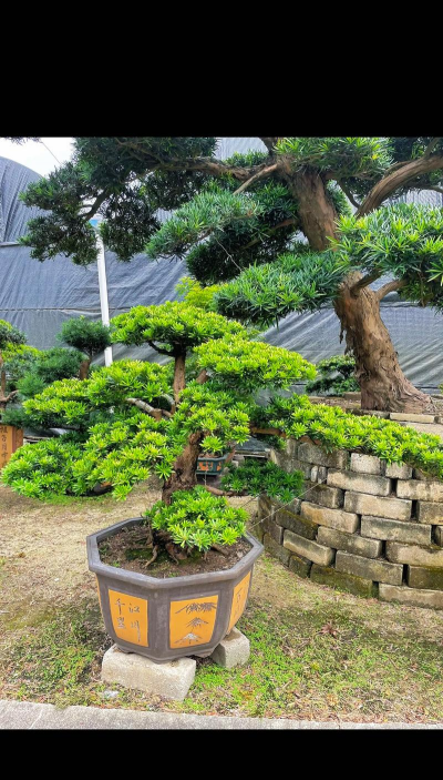 日本罗汉松树干深灰色,针状叶密集,适合庭院树或大型景观,曾有天价成交记录(如300年树龄拍出680万元)。