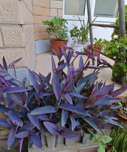 紫竹梅鸭跖草科草本,全株紫红色,耐阴,适合室内垂吊栽培。