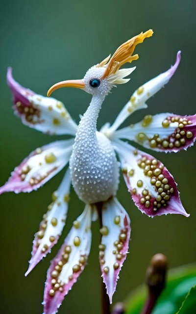 海南鹤顶兰:花瓣形似白鹤头部,具有独特的钩状结构。