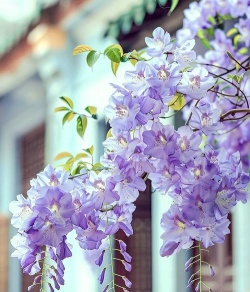 蓝雪花(Lilac)蓝雪花为灌木植物,花朵呈锥状花序,颜色多为紫色、粉红色或白色,垂挂的长形花序与紫藤相似,但属于不同科属。