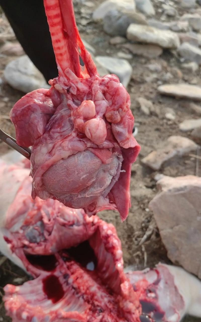 剖检可见腹腔内有大量浅黄色半透明积液,心脏、肝脏、肺脏等器官表面覆盖黄色纤维素性渗出物(如“绒毛心”),这是该病的典型病理变化。