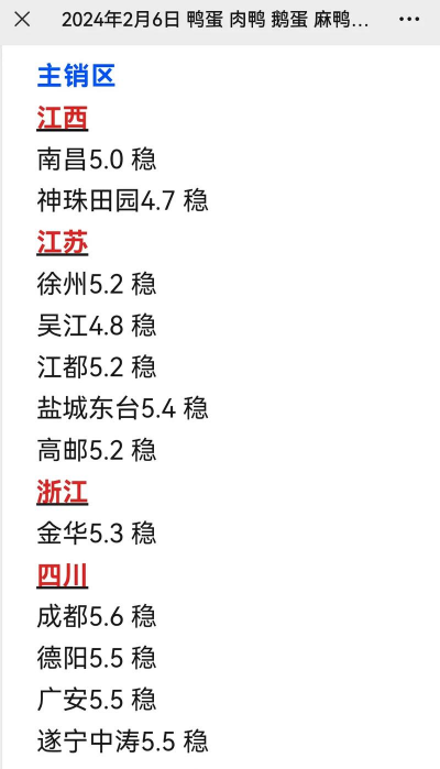 根据2025年10月6日的最新市场行情,蛋鸭的价格因地区、品种、规格及交易方式(如活禽或屠宰)存在差异,具体如下: