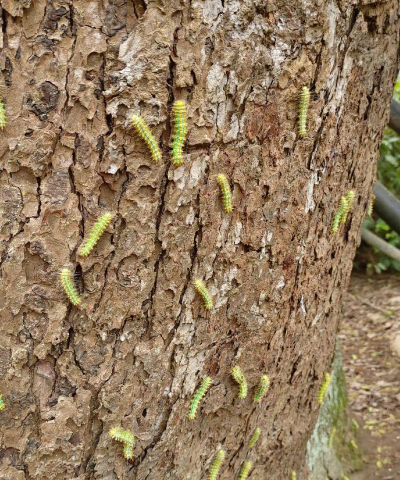 刺蛾幼虫取食叶片,虫茧多见于树干或土壤中,冬季人工除茧或灯光诱杀成虫有效。