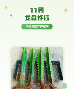 养护管理:扦插后置于半阴处,保持土壤微润,约30-40天生根。综上,春秋季(3-5月、9-10月)是龙骨扦插的理想时段,成活率最高。其他季节需根据环境调整管理措施。