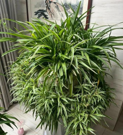 吊兰吊兰能有效吸收甲醛、苯乙烯等有害物质,且夜间释放氧气,改善空气质量。需保持通风和适当光照以增强净化效果。