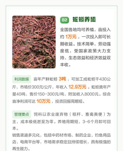 蚯蚓成本极低(每亩3000元),处理粪便还可获环保补贴,亩产值可达3-4万元。