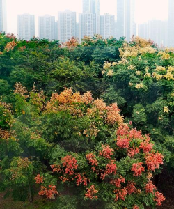 丹桂树 :秋季淡黄色小灯笼状花朵,常与果实共存。
