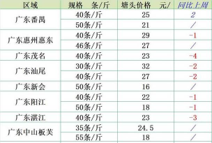 近期上涨:广东、广西因存塘量下降及养殖户惜售,价格小幅回升0.2-0.3元/斤。