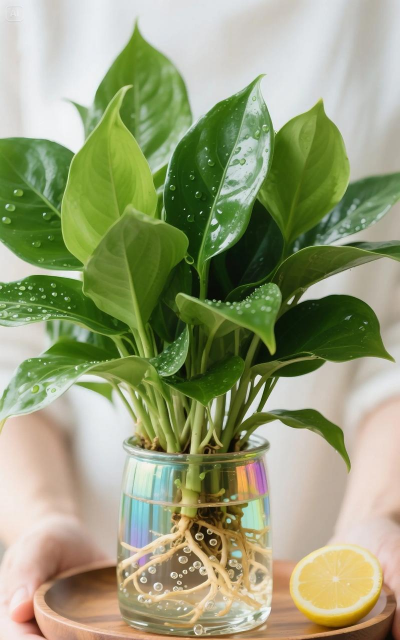 特点:攀藤观叶植物,耐阴性强,可吸收甲醛,适合新装修家庭或办公室。水养时需2-3天换一次水,搭配简单营养素即可。