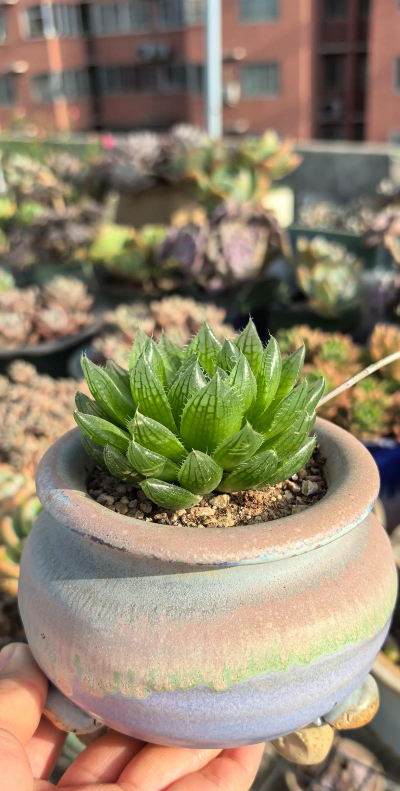 叶瓣顶部圆润,竖条纹路较短,生长速度慢。光照充足时叶脉呈褐色,缺水或浇水过多会影响生长。