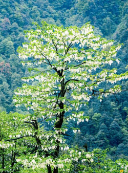 珙桐(鸽子树)国家一级保护植物,春季开花时白色苞片如白鸽展翅,主要分布在川西高原及山地,被誉为“植物活化石”。