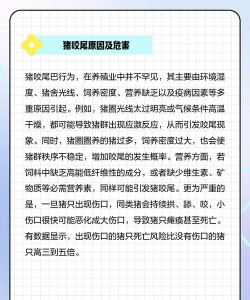 猪咬尾行为主要与营养缺乏、环境管理不当等因素相关,具体可分为以下四类: