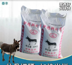 繁殖驴:精饲料占15%~30%,配方示例:玉米59%、豆粕20%、麦麸15%、预混料4%等。