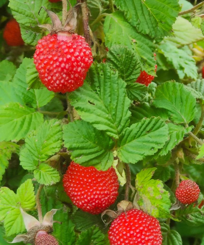 果实:聚合浆果,由多个小核果组成,球形或卵球形,直径1-2厘米。成熟时颜色多样,包括红色、黄色、黑色或紫色(如红树莓、黑莓等),表面密被短柔毛,易与花托分离。
