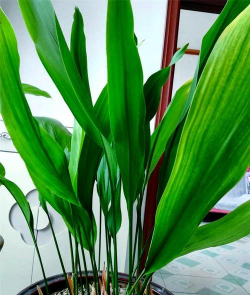 特征:叶片为纯绿色,无斑点或条纹,呈矩圆状披针形或椭圆形,叶长22~46厘米,宽8~11厘米,叶柄粗壮。