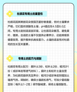 杜鹃花对土壤要求较高,适宜在疏松、透气、排水良好且呈酸性的土壤中生长,pH值应控制在4.5-6.5之间。以下是具体用土建议及配制方法: