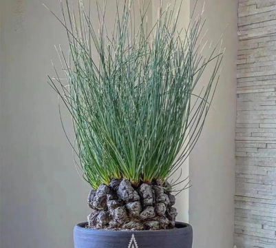 圆肚型或浅盆 :圆肚型花盆美观且符合酒瓶兰自然形态,浅盆(比根系略大)便于操作和后期换盆。