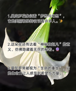 曼陀罗花(Datura)因其独特的形态、毒性以及深厚的文化背景,在不同文化和颜色象征中具有复杂多样的寓意。以下是其主要的寓意及文化内涵: