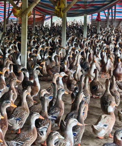 优势:72周龄产蛋超330枚,抗病性强,适合无水面笼养技术(如福建推广的“间歇喷淋”模式),节省饲料5%-6%,淘汰鸭羽毛质量好,附加值高。蛋鸭产业年产值超380亿元,市场需求稳定。