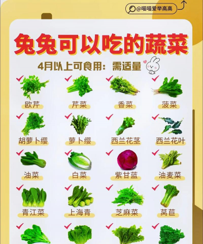 兔子的饮食应以高纤维、低糖、低蛋白为主,主要包含以下几类食物: