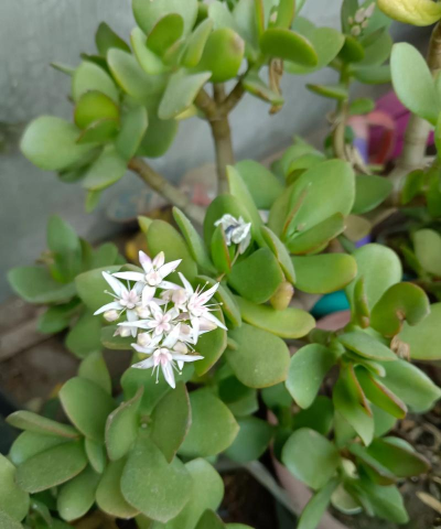 玉树(Crassula arborescens)开花时具有以下特征:
