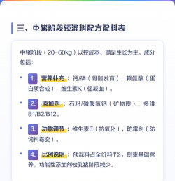 精准计量:微量成分需用电子秤精确称量(精确到0.01克),混合设备推荐卧式双螺带混合机以确保均匀性。预混料配方的科学设计是饲料工业的核心技术,直接影响动物生产性能和饲料成本效益。实际应用中需结合具体需求选择或调整配方,并通过正规渠道采购合格产品。