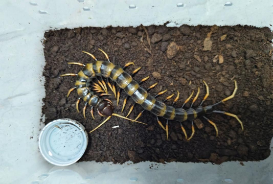 特点:体型较小(约8厘米),色彩鲜艳,分布广泛,容易获取。性情相对温和,适合初次接触蜈蚣的饲养者。
