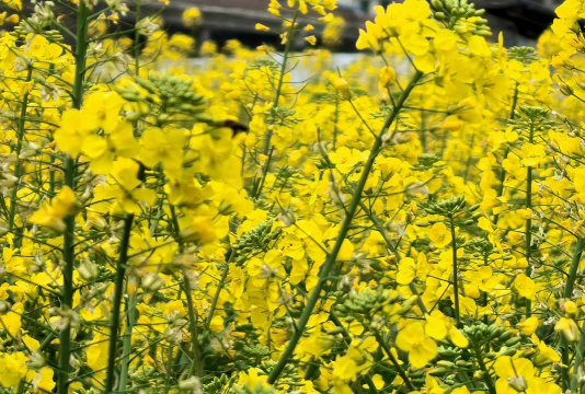 油菜花不仅是观赏植物,还为蜜蜂等昆虫提供授粉服务,促进油菜籽产量。其种子可榨取菜籽油,是重要的食用油来源。