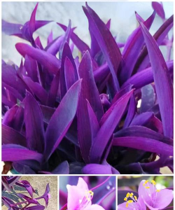 特征:草本植物,叶片紫色,花朵色彩丰富(粉、黄、紫等),春季开花。