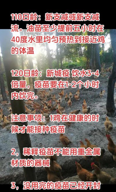 观察记录 :接种后24小时内观察鸡群行为、食欲及体温,异常需及时处理。