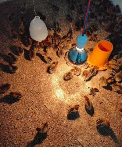 脱温过程:刚出壳的雏鸡体温比成年鸡低约3℃,需通过人工保温(如育雏室的取暖设备)维持适宜温度(通常初始温度为35℃左右),经过10天左右才能达到正常体温。15-20天后,雏鸡绒毛逐渐丰满,体温调节能力增强,可逐步脱离人工保温,这一过程称为“脱温” 。