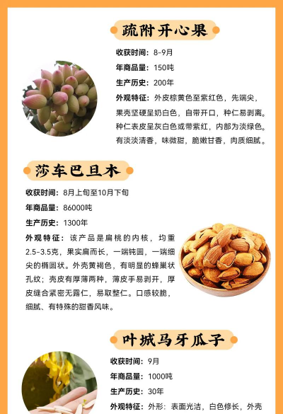 主要产区:伊犁河谷、阿勒泰地区、昌吉回族自治州特点:马铃薯在新疆种植历史悠久,主要用于食用和加工。总结