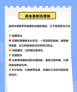 适时浇水:保持土壤湿润但不过度积水,特别是在花期前后要特别注意。合理施肥:在春季和夏季施用适量的复合肥,以促进植株的健康生长。修剪枯叶:及时清除枯黄的叶子,保持植株整洁,有利于花朵的开放。病虫害防治:定期检查植株,发现病虫害及时处理,避免影响花期。适当遮阴:在高温强光下,适当遮阴可以延长花期,避免花瓣过早凋谢。彼岸花的文化意义