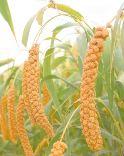 别名:粟、小米、黄米特点:耐旱、耐瘠薄,适应性强。穗状花序,籽粒小而圆。主要种植区域:中国北方、印度、非洲等地。用途:食用:煮粥、蒸饭、磨粉制作面食。饲料:用于家禽和牲畜饲料。医药:具有一定的药用价值,如健脾养胃。稷 (Panicum miliaceum)