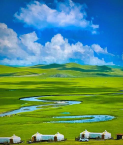 辽阔的草原,一望无际散落其间的湖泊、河流和湿地丰富的野生动植物资源草原上分布着成群的牛羊马等牲畜人文特色: